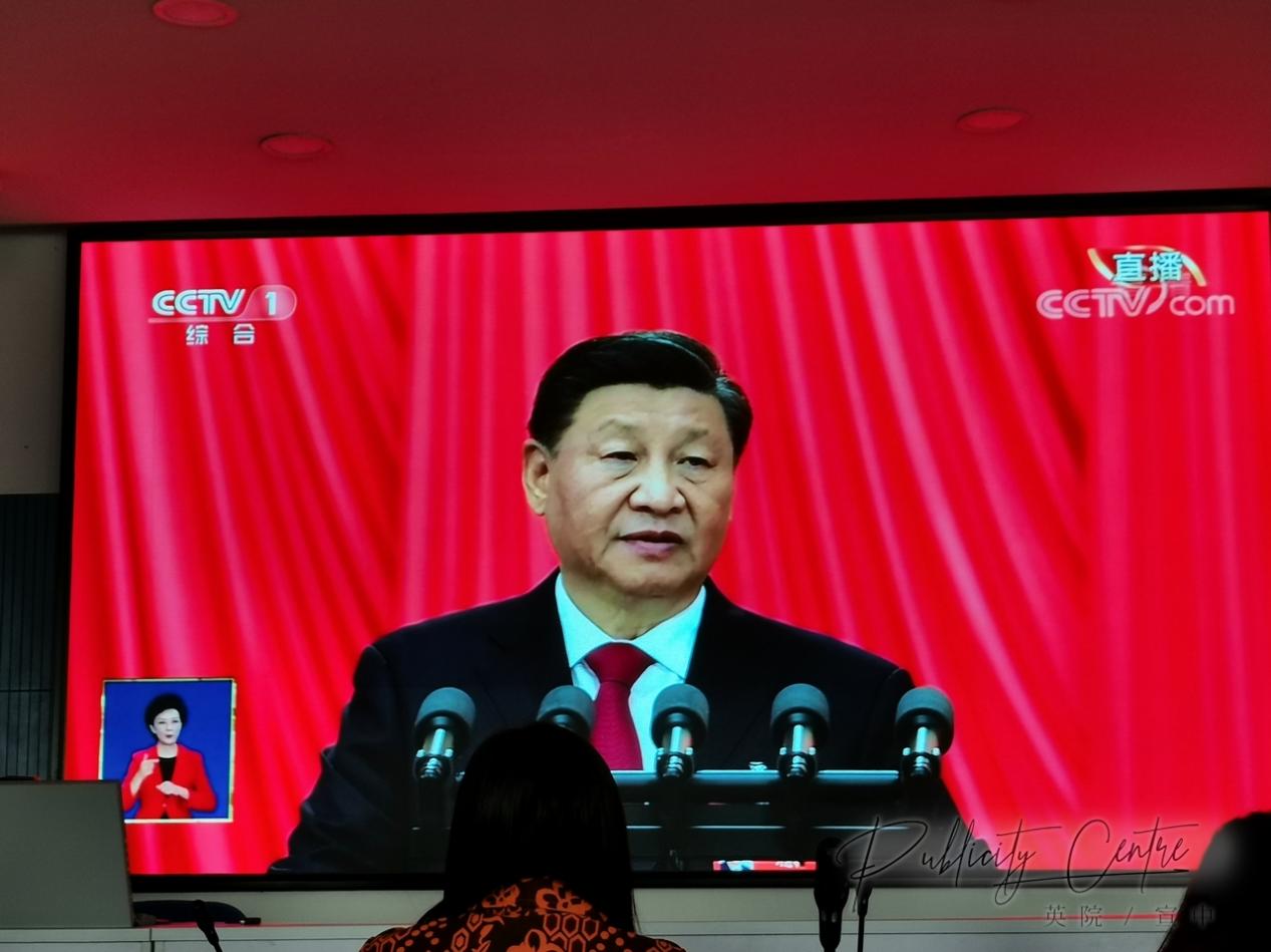 习近平总书记的报告向我们展示了十八大以来,党带领全国人民在多种领域取得的伟大成就,并表示,党用伟大奋斗创造了百年伟业,也一定能用伟大奋斗创造新的伟业。会后,大家纷纷表示,作为当代大学生,我们更应该砥砺前行,紧密地团结在以习近平同志为核心的党中央周围,为把我国建设成富强民主文明和谐美丽美丽的社会主义现代化国家而奋斗!
