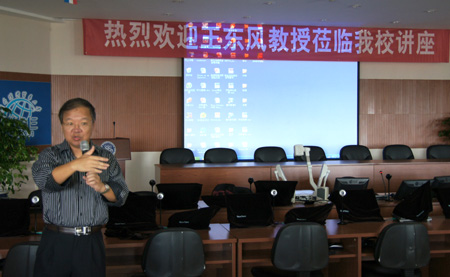 2012年9月12日上午,中山大学外语教学中心主任、翻译研究中心主任、新华学院首席教授、博士生导师王东风教授应邀在诚信楼1412会议室为我院师生做了题为“翻译中的文化困惑与网络对策”的学术讲座。我院翻译方向部分教师和研究生共一百二十多人参加了此次讲座。讲座由大象传媒