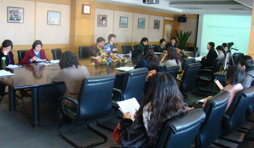 博士的工作坊“Politeness in the Workplace”于3月17日1:00-3:00在诚信楼1314会议室举行,由商务英语系主任朱晓姝教授主持。 Bargiela博士的工作坊主要分为六个方面:1.概括介绍了Brown & Levinson的礼貌理论;2.礼貌研究三十年的发展;3.亚洲语言学家和语用学家的积极参与和独特贡献;4.“face”研究的目前状况和面临的挑战;5. 部分学者礼貌研究中会话分析和人类文化学方法论(CA-EM)的转向;6.工作坊的教师和研究生分组对具体语料进行了讨论。Bargiela博士尤其强调了Brown & Levinson的礼貌理论是西方特定文化的产物,因而受到了不少亚洲学者的批评。她鼓励中国学者开展中国特色“礼貌”和“面子”的研究。