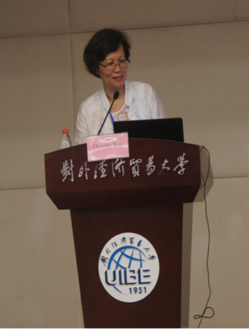 最后,国际商务英语研究所所长冯捷蕴教授主持了本次论坛的闭幕式。冯捷蕴指出今后将通过微信平台、研究所的公众号继续和参会者交流,并表示欢迎兄弟院校承办下一届论坛。她还特别感谢各方对于会议组织工作的大力支持。