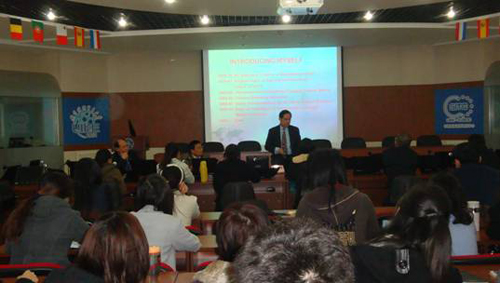 陈峰教授在讲座中首先介绍了联合国同声传译产生的历史背景及其发展的过程。陈峰教授结合自身近二十年联合国同声传译经验,回顾了他成为联合国资深同传译员的历程,并向同学讲解了同声传译译员必备的三十项素质,为广大同学揭开了同传译员的面纱。陈峰教授还就当前我国同传译员培养的现状及存在的主要问题进行了分析,并提出了自己的见解。讲座的最后,陈教授回答了现场同学提出的在同传实践中所遇到的具体问题。