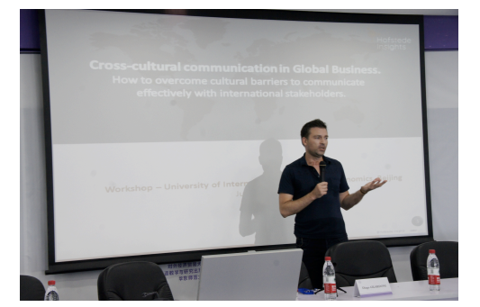 在召开高端论坛前一天,7月14日下午还安排了工作坊和研讨会2场活动。第一场活动是题为Cross-cultural communication in Global business: How to overcome cultural barriers to communicate effectively with international stakeholders的工作坊,由Hofstede Insights高级咨询顾问、TED跨文化商务演讲专家Diego Gilardoni先生主讲。Gilardoni先生指出:当今跨文化商务活动充满挑战,文化差异导致了70%的跨国企业经营失败,68个国家的企业高管都将“跨文化管理”列为他们工作的最大挑战。他重点阐述了国家文化中权力距离、集体主义/个体主义等六个维度并分析了它们如何在国际商务活动中发挥作用。