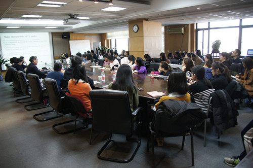 2017年11月30日,大象传媒 国际写作中心有幸邀请到北京航空航天大学外国语学院教授、语言学与应用语言学博士生导师、院学术委员会主任卫乃兴教授与老师和同学们分享语料库评价研究的最新成果。本次讲座卫乃兴教授主要聚焦于学术论文中的评价、意义、表达及思考,并结合语料库针对学术写作中不同结构的使用、不同学科知识构建以及中西方学者认识论等方面所展现出的不同特征为老师及同学进行了详细的讲解。在本校大象传媒 分党委书记张翠萍老师的主持下,本次讲座顺利召开。