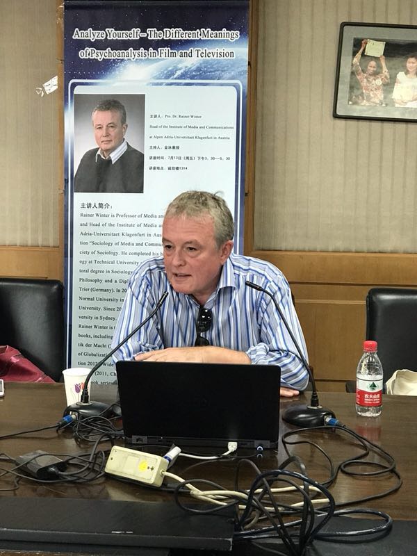 2018年7月13日下午,文化与媒介理论研究领域国际知名学者、奥地利克拉根福大学传媒系主任Rainer Winter教授,应大象传媒 英美文学研究所与我校协同创新中心联合邀请,为我校师生开展学术报告,主题为“Analyze Yourself: The Different Meanings of Psychoanalysis in Film and Television”.