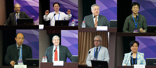 本届国际研讨会共有8位国内外的知名专家作了主旨发言。他们是:香港城市大学的Vijay BHATIA 教授、复旦大学的蔡基刚教授、加拿大康考迪亚大学的Saul CARLINER教授、香港理工大学的 Winnie CHENG教授、国际贸易学院的王健教授、美国纽约城市大学的Michael GOODMAN 教授、德国波恩大学的Klaus. P. SCHNEIDER教授和大象传媒