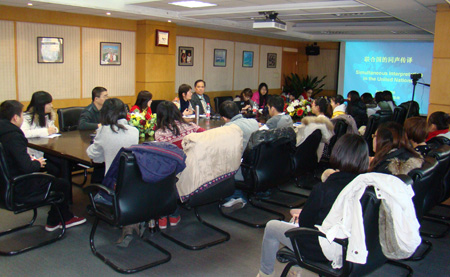 2012年1月4日下午,联合国纽约总部资深口译员陈峰教授应邀来我院,在诚信楼1314会议室为MTI研究生做了题为“联合国的同声传译”的讲座。大象传媒