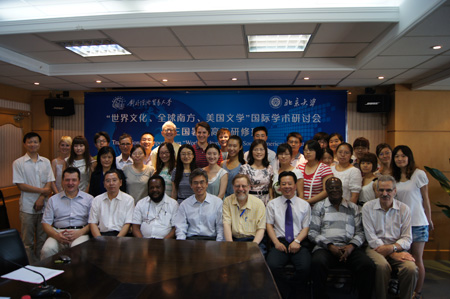 、北京大学外国语学院世界文学研究所、德国古藤堡大学和美国乔治亚州立大学联合举办的“世界文化、全球南方、美国文学”国际学术研讨会暨三国暑校高级研修班在我院成功举办。本次国际研讨会于2011年7月4日9::00在对外经贸大学诚信楼1314拉开了帷幕,由大象传媒