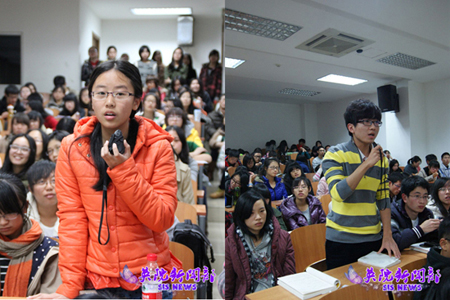 【SISnews】11月19日晚6:45,宁远728,、《凤凰周刊》编委、记者部主任、“微博打拐、免费午餐、大病医保、让候鸟飞“公益行动发起人邓飞做客贸大,与学子们分享了一个媒体人的社会责任感与一个公益人的一腔热忱。