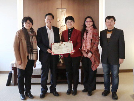 讲座开始之前,文君副书记在行政楼206贵宾室会见了聂珍钊教授,大象传媒 分党委书记张翠萍、英美文学研究所所长金冰、协同创新中心办公室主任王宇航等陪同会见。文君副书记对聂珍钊教授的来访表示热烈欢迎,向聂珍钊教授分享了我校入选“双一流”建设高校名单的喜讯与外语学科近年来发展取得成果,并表示,希望以聂珍钊教授此次来访讲学为契机,继续深化我校与浙江大学在双方优势学科领域间的交流与合作。聂珍钊教授感谢文君副书记的热情接待,祝贺我校在学科发展方面取得的成绩,恭喜我校“外国语言文学”学科获得教育部新增一级博士学位授权,并欢迎文君副书记带队我校实践协同创新中心在合适的时机到浙江大学考察,继续推进两校交流合作的深入发展。