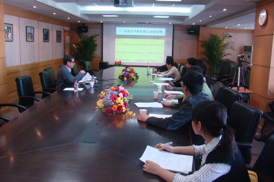 2009年4月15日下午,四川外国语学院王寅教授应邀来我院讲学。王寅教授是认知语言学研究专家,为四川外国语学院认知科学研究所所长、四川大学和苏州大学兼职博士生导师。王寅教授讲座的题目为“认知语言学的前沿性和应用性——简述‘应用认知语言学’的理论基础和教学实践”。讲座由王立非院长主持,学院部分教师和研究生参加了讲座。