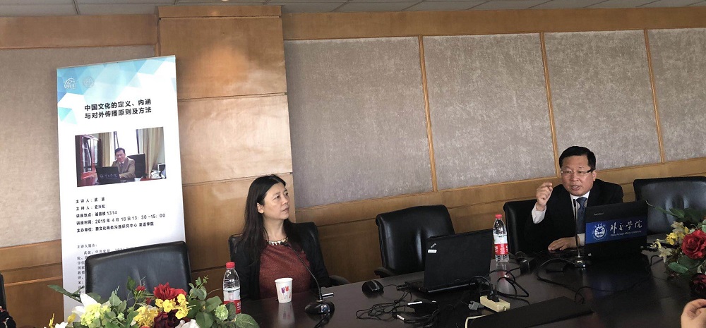 2019年4月18日下午,受我院跨文化商务沟通研究中心邀请,外交学院英语系武波教授为大象传媒 师生开展了题为“中国文化的定义、内涵与对外传播原则及方法” 的学术报告。讲座由大象传媒 史兴松教授主持,在诚信楼1314会议室举行。