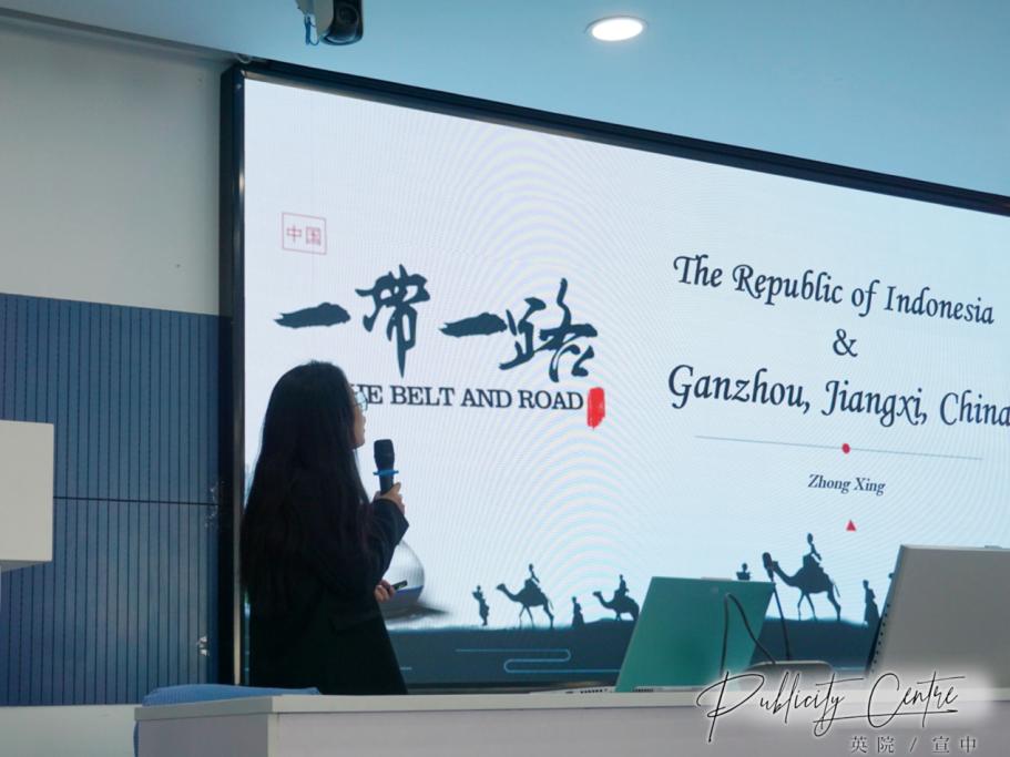 第二位上场的是钟星同学,她以交通致富为出发点,提到印度尼西亚在海上丝绸之路的带领下欣欣向荣。同时,她也结合中国高铁助力“一带一路”行稳致远、推动家乡赣州振兴的例子,提出交通可以促进当地发展繁荣。