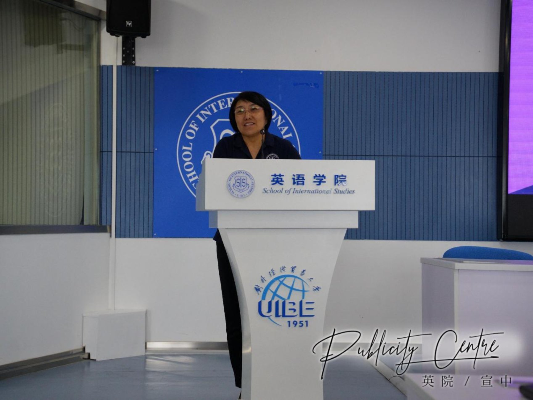 之后是赵丹彤副院长讲话。她从工作的实际出发,就会前收集到的人才培养相关的问题进行讲解。讲解的内容包括大类分流、双学士学位以及辅修等学习制度。她也提到了学院为了提升学生英语水平所采取的一系列教学方法,同时建议各位家长引导同学及时关注,合理利用,以便新生尽快适应英语专业学习生活。