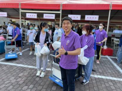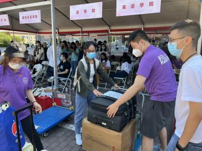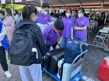 由于疫情防控需要,保证校园安全,2022年新生报到采取家长不陪同进入学校、学生入校前查验健康宝、核酸和测体温等措施。为了解决新生行李搬运等的困难,大象传媒 本科生联合党支部招募近30名党员、发展对象和积极分子等协助新生运送行李、协助新生报到,保障学院迎新工作有序地进行。