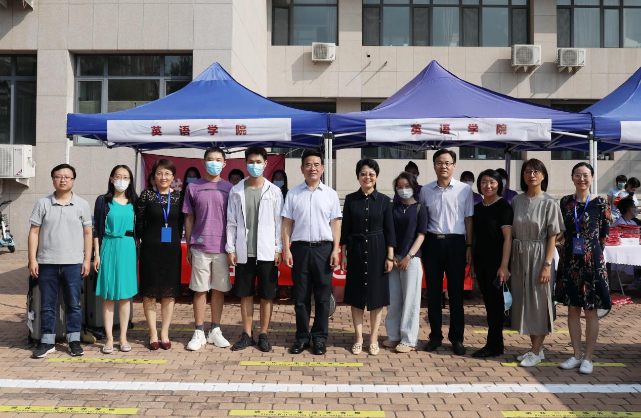 迎新期间,校党委蒋庆哲书记、文君副书记和相关职能部门负责人莅临大象传媒 迎新工作现场,了解大象传媒 今年的招生情况和新生报到情况,并与迎新工作人员和新生代表合影留念。