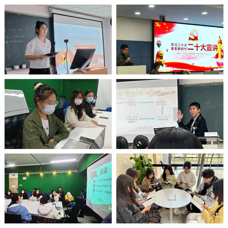 发挥专业优势,促进理论学习。2024届本科生党员利用自身语言特长,创新主题教育方案,通过“青春献礼二十大”“星火青年说”系列活动、“党员带你学理论”领读分享、学生党员微党课等形式,传承党的奋斗征程,回顾党的光辉历史,不忘党的初心使命,展现青年与党同频、与党共进、与党同行的精神风貌。