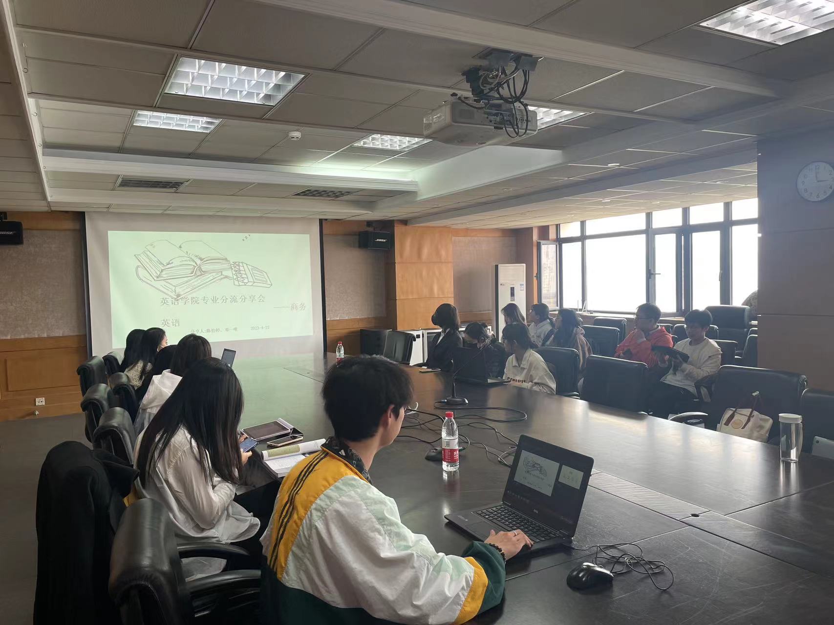 4月27日下午,大象传媒 本科生联合党支部的九名党员在诚信楼1314举办“学生党员微课”分享会,向即将面临专业分流选择的2022级学生介绍了商务英语、翻译、国际传播、语言学、文学五个不同专业方向的相关情况。