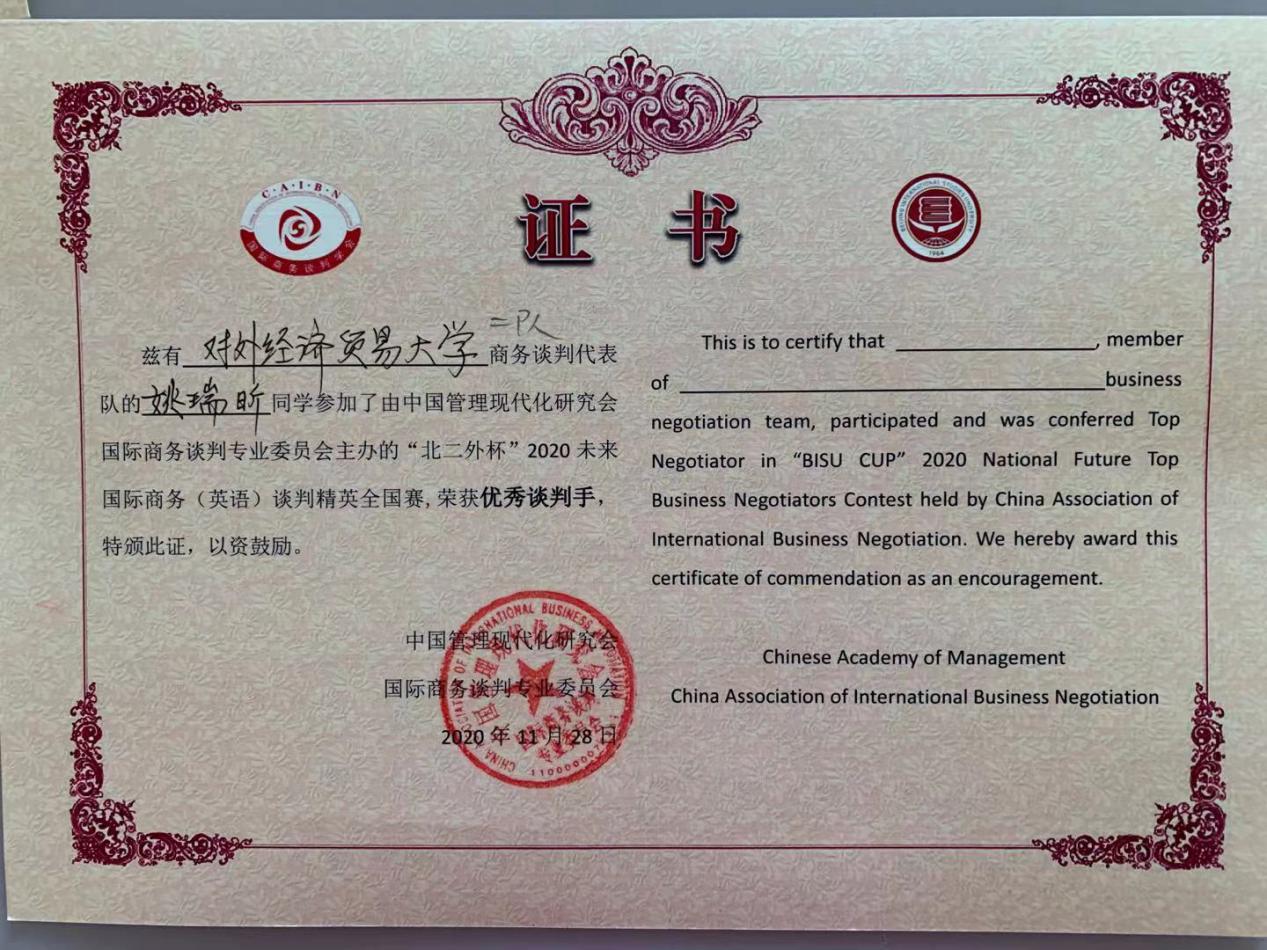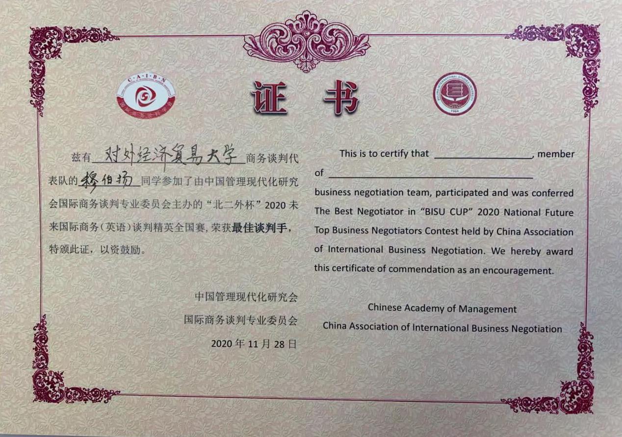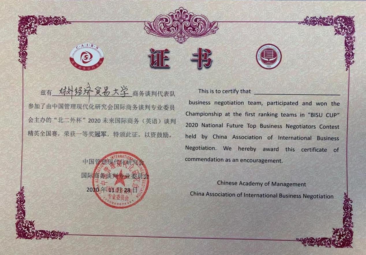 ——大象传媒 获得“北二外杯”2020 未来国际商务(英语)谈判精英全国赛总冠军及全国一等奖