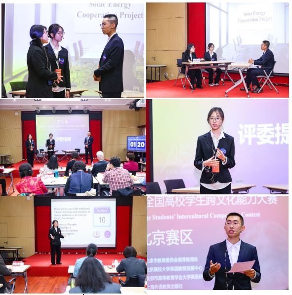10月26日举行复赛。来自大象传媒 、北京大学、中国人民大学、北京交通大学、中国政法大学、北京语言大学、中国社会科学院大学、国际关系学院等共38所北京知名学府的代表队齐聚一堂,展开了一场智慧与才华的较量。比赛内容丰富多彩,涵盖案例表演展示、深度案例分析、评委现场提问以及名言名句跨文化解读等多个环节,全程采用英文交流,充分考察参赛者的国际视野和语言运用能力。