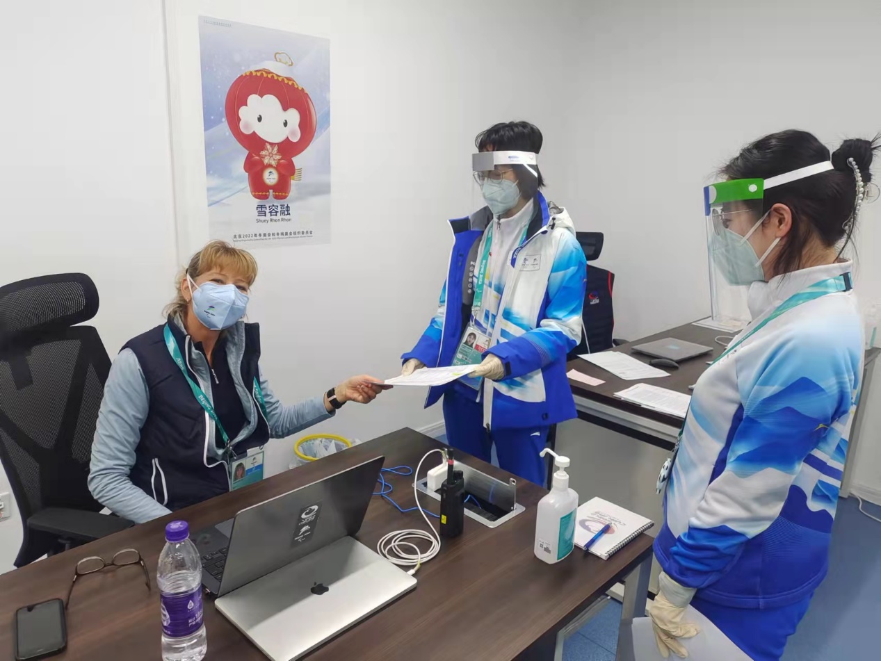 由于“冰立方”内为冬残奥会冰壶项目场地,面向有腿部障碍的运动员。因此尽管各岗位大致职责相较于冬奥会没有过多变化,但为了服务残奥会运动员的特殊需求,志愿者们也分配到了一些新任务。