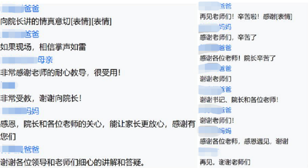 刘冰副书记简要介绍了大象传媒 学生工作体系、学生组织和校园活动、学院为学生提供的精准帮扶和指导,并详细解读了当前校园疫情防控政策,以及学校、学院采取的各种服务和保障措施;呼吁家长们与学院一道做好学生教育引导工作,帮助他们牢固树立安全意识、规则意识,做好自我规划和管理、加强体育锻炼、保持良好心态,期待家校携手,共同引导、陪伴学生,为他们创造良好的生活学习氛围和发展空间。