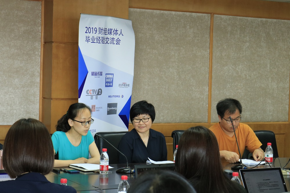 2019年6月13日下午2时,一年一度的“2019年财经媒体人毕业经验交流会”在诚信楼1314会议室召开。应我院语言文学系副主任、国际财经新闻研究中心主任钱晶晶老师邀请,《经济观察报》社委会委员、副总编辑张向东老师,《经济观察报》办公室主任、人力资源部主任张洁老师以及我院2019届七位优秀的毕业生同学作为嘉宾代表参会。学院党委副书记刘冰老师出席会议,副院长孙亚教授在会前与嘉宾老师进行了专题交流。英语财经新闻专业教师代表、国别文化研究所所长王吉美老师也应邀参会。本次交流会旨在为有志于财经媒体事业的同学们解答关于职业规划和留学申请的困惑,帮助同学们树立职业目标,提升对财经媒体相关专业信息、实践技能与研究现状的了解与认同。