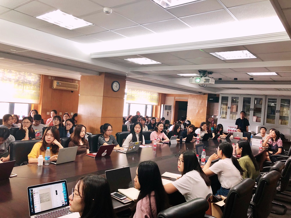 张雪和王丽雯两位同学分别获得香港中文大学全球传播专业和新媒体专业录取,她们对选择香港高校深造的原因进行了详细阐述,并详细介绍了香港中文大学媒体专业留学项目的详细情况、需要准备的申请材料和申请文书准备的注意事项,诸多细节分享得十分到位。作为在场分享的唯一研究生学姐,2019届MTI商务口译毕业生蔡子涵同学向大家详细讲述了以纯文科背景申请马里兰大学Marketing Analytics专业的经历,从经济因素、就业考虑、个人发展等角度,详细介绍了如何选择学校和专业,内容十分翔实,让在场同学深受启发。与上述同学不同,2019届财经新闻专业谭心阳同学选择了在毕业后进入职场,她讲述了自己从担任华为的校园大使到成功入职华为大中华区终端电商部的心路历程,为有意求职的同学们解答了有关实习体验与求职打拼的困惑。