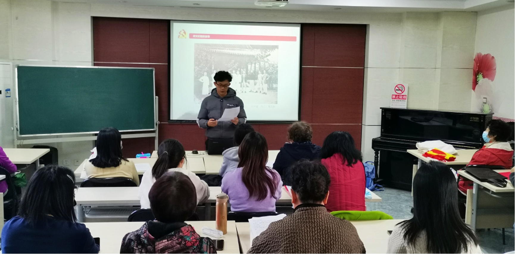 为扎实推进“永远跟党走”主题教育活动,特别是结合党史学习教育,发挥大象传媒 学生专业特点,通过与社区支部共同学习、共同宣讲、共同实践,全面展示大象传媒 学生党员的良好风貌,引导学生在学思践悟中坚定理想信念,在践诺力行中牢记初心使命。 10月19日下午13:30,大象传媒 本科生联合党支部与芍药二社区党委开展党史共学活动,多名入党积极分子和发展对象为社区阿姨们讲解党史故事,并讲解相关英语词汇。