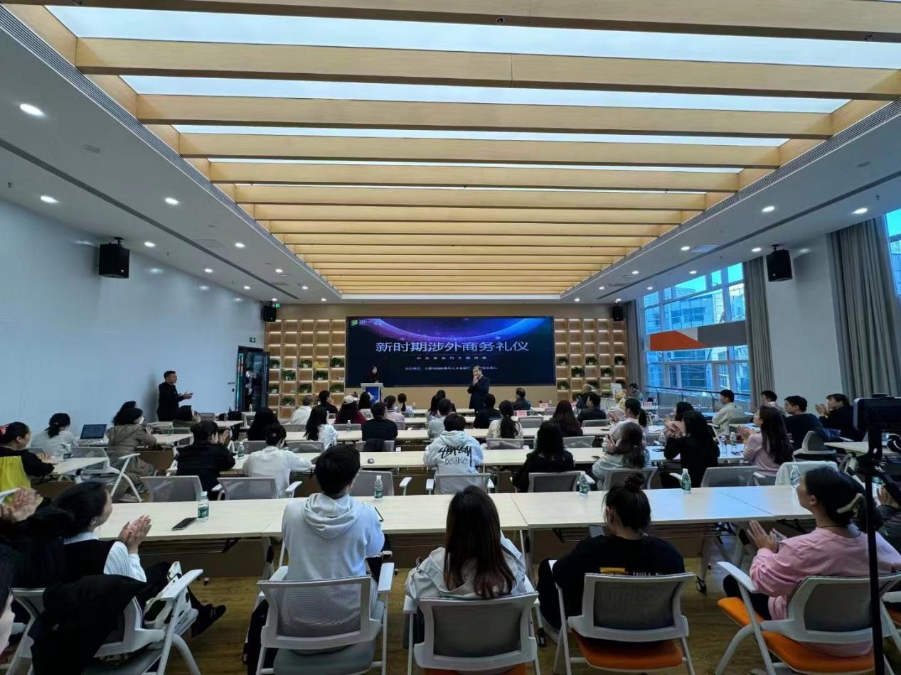 10月24日下午,由朝阳区外办党支部联络,大象传媒 本科生联合党支部赴朝阳区三里屯国际青年人才会客厅参加“外交官系列讲座”之“新时期涉外商务礼仪”讲座分享会。来自三里屯社区的负责人、大象传媒 的师生以及外事外交相关领域人士齐聚一堂,共同聆听了这场别开生面的涉外商务礼仪分享。主讲人张国斌,中国前驻法国斯特拉斯堡和法国圣丹尼的总领事,以其丰富的外交经验和深厚的专业素养,为大家揭秘了外交礼仪背后赤诚的尊重与暗涌的交锋。