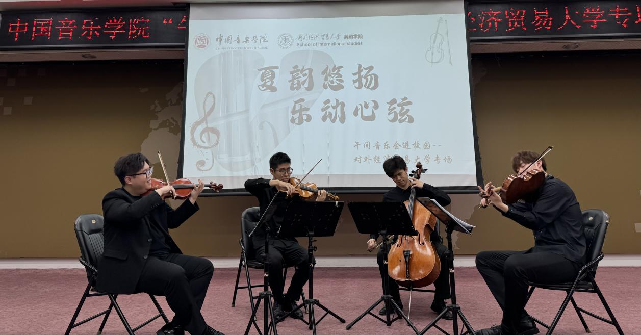 以美育人、以文化人,美育是审美教育,更是情操教育和心灵教育,对于立德树人具有不可替代的作用。2024年6月5日中午,大象传媒 联合中国音乐学院管弦系举办了“夏韵悠扬,乐动心弦”午间音乐会进校园活动,旨在丰富校园文化生活,提升学生的艺术素养,并促进两校之间的文化交流与合作。大象传媒 本科生联合党支部负责活动的开展。中国音乐学院管弦、指挥系(直属)党支部副书记马楠老师、国际一级演奏员、中国爱乐乐团中提琴首席、中国音乐学院毛新光教授及演奏团队、大象传媒 刘冰副书记、赵丹彤副院长、孙亚教授、本科生支部书记张杉杉以及支部党员等出席活动。