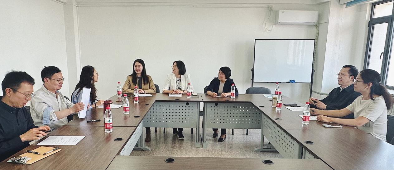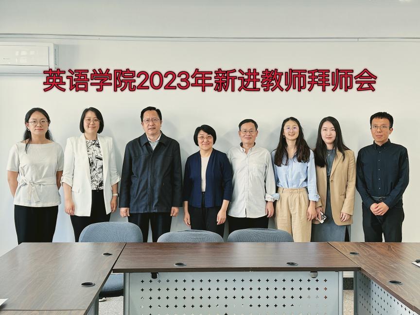 在诚信楼1418会议室举行新进教师拜师会。会议由党委书记项洁主持,2023年4位新入职教师及3位指导教师参会。