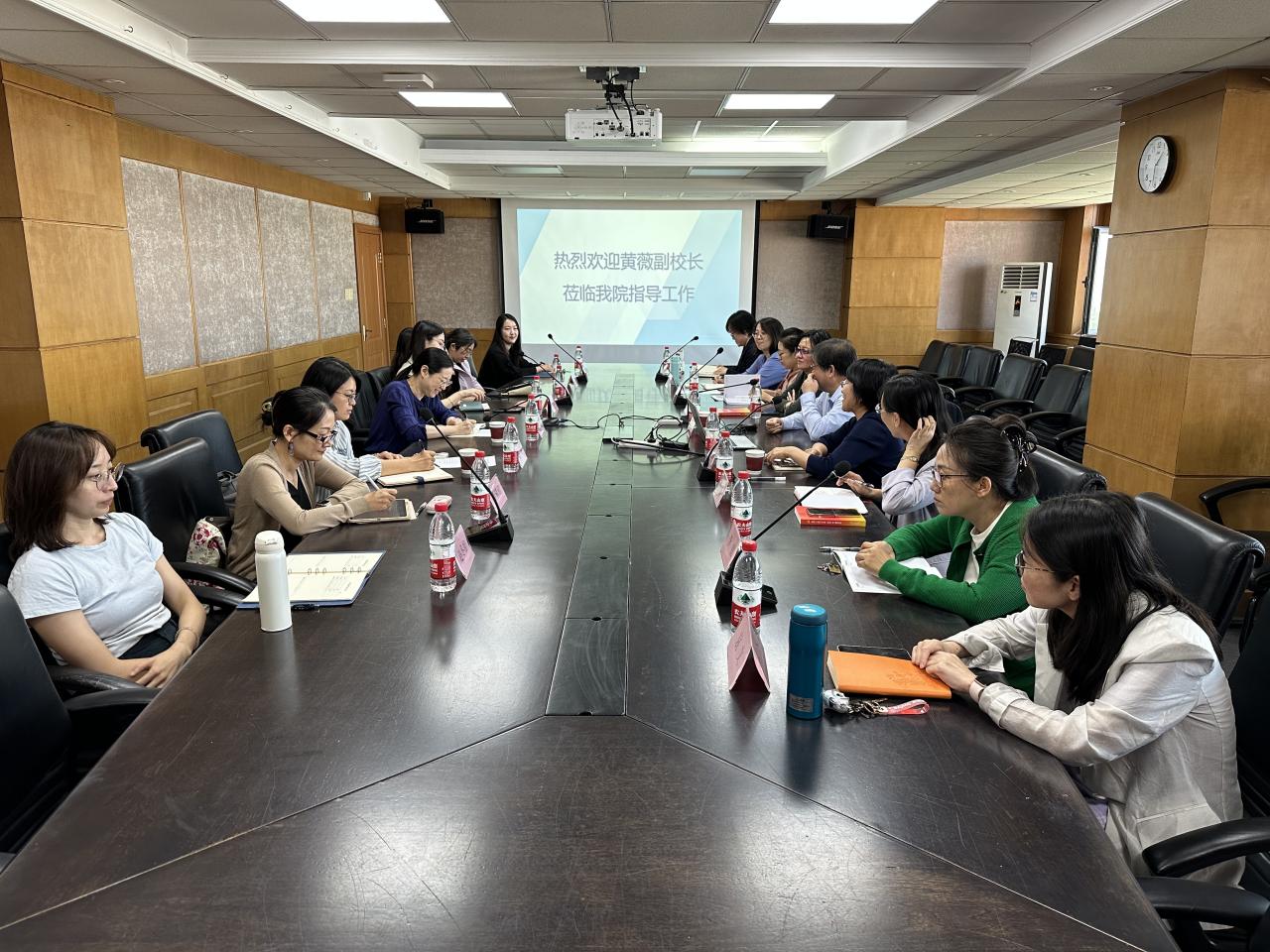 黄薇副校长认真听取汇报,对学院班子和全体教职工的辛勤工作和丰硕成果表示肯定,并对学院下一步工作提出指导意见。首先,要深入研究在新形势下外语学科如何焕发新的活力,凝练特色,准确找到着力点。第二,要主动求变,深入推进公共外语教育教学改革、人才培养分类评价、有组织的教学科研,培育好学科带头人和教学科研团队。她表示将认真研究学院反馈的问题,全力支持学院发展,期待学院在人才培养、学术研究等方面取得新的突破。