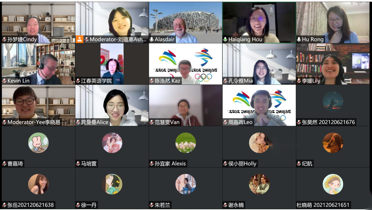 2022年4月21日晚,大象传媒 举办了题为“北京2022冬奥会与奥林匹克运动发展国际研讨会”的模拟会议。贸大杰出校友、英国KL传播有限公司总经理林超伦,前欧洲议会资深译员Alasdair Thomson先生,中国对外翻译有限公司首席议员、北京冬奥会首席议员侯海强女士,大象传媒 翻译学系副主任、北京冬奥会首席译员胡荣老师作为发言和点评嘉宾受邀参会,大象传媒 副院长江春为本次会议开场致辞。2021级MTI英语口译专业研究生为本次会议提供了全程同传。大象传媒 百余名研究生全程在线观摩学习。