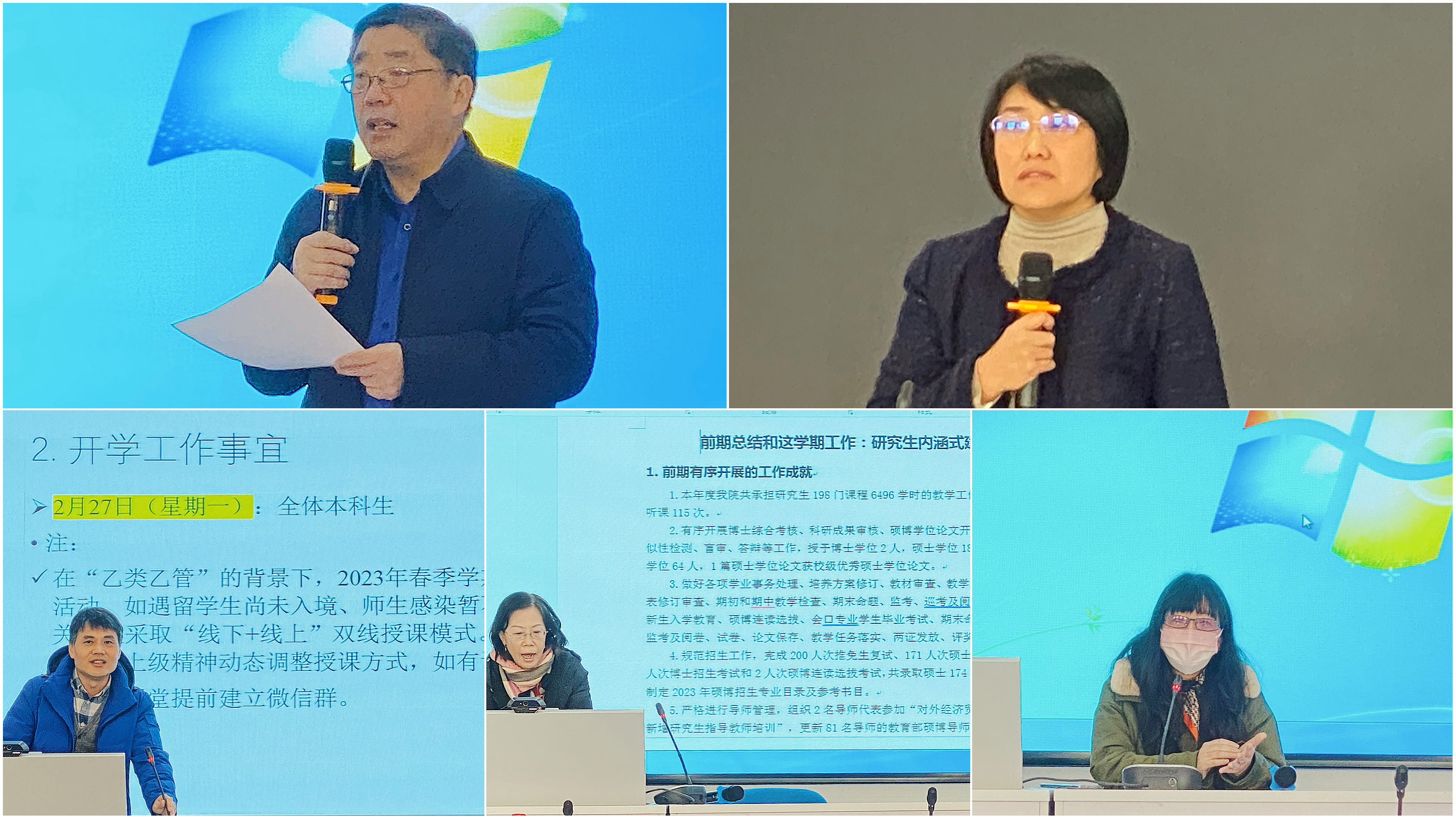 江春副院长对上学期研究生工作进行总结,并布置新学期相关工作。要求加强日常教学工作管理和学术质量过程管理,着力提升研究生培养质量,为规划布局翻译博士专业学位点建设做好准备。