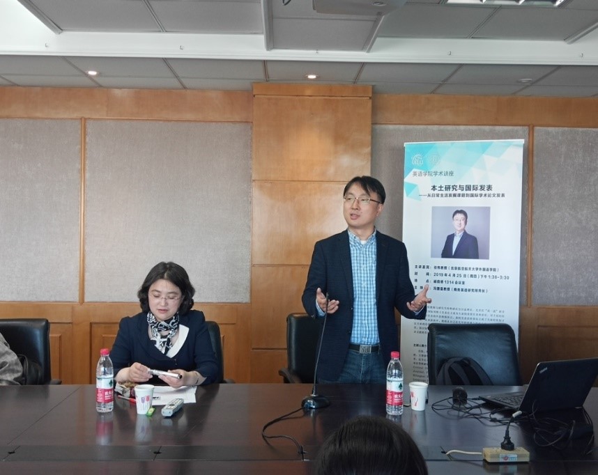 2019年4月25日下午1:30-3:30,北京航空航天大学外国语学院任伟教授应我院商务英语研究所邀请,在诚信楼1314会议室做了题为“本土研究与国际发表——从日常生活发掘课题到国际学术论文发表”的学术报告。本次讲座由商务英语研究所所长冯捷蕴教授主持。参加这次讲座的主要为大象传媒