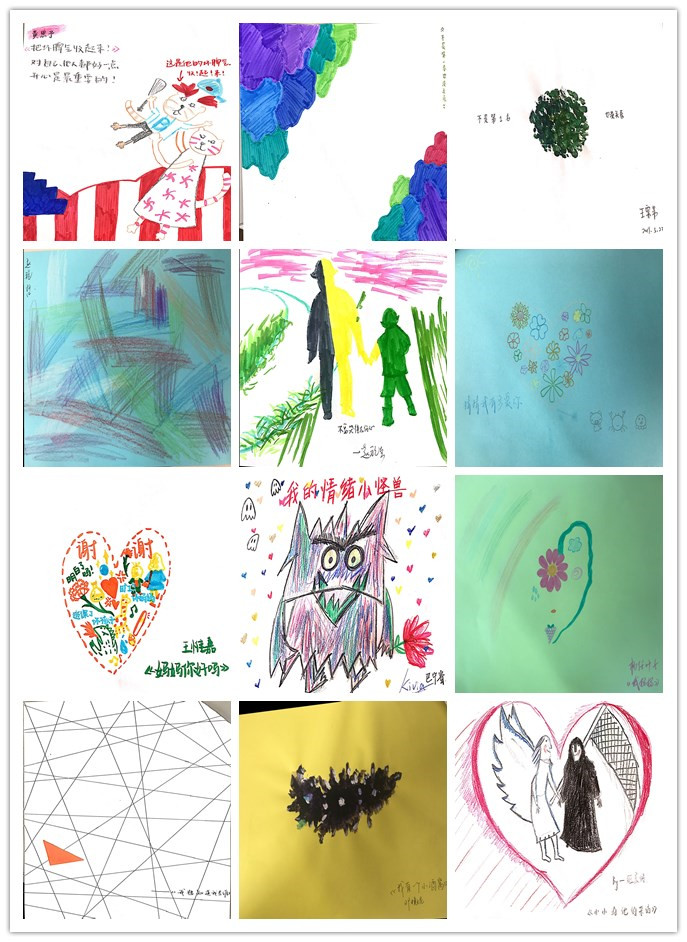 交流会开始,每一位同学选取了一本心理绘本进行阅读。与常规读书交流会不同,同学们将以画作的形式表达阅读感想。本次阅读的心理绘本涵盖生命教育、情绪管理、亲子关系、自我悦纳等内容,用一个个温情的故事、一幅幅治愈的图画表现深刻的主题意义。