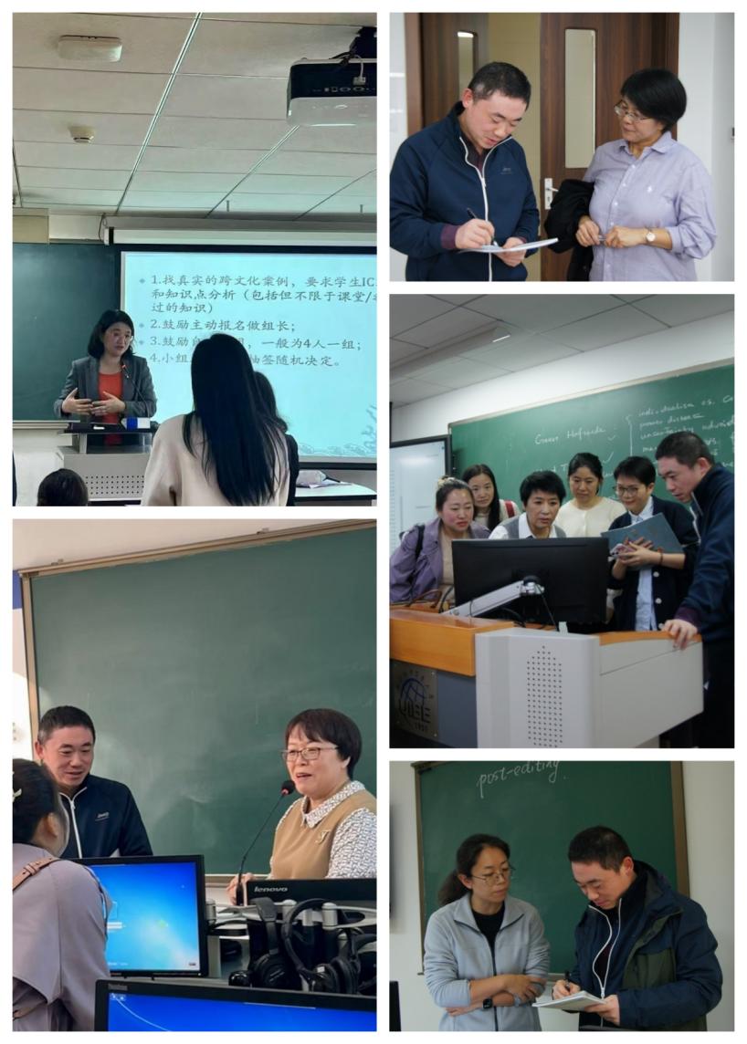 随堂听课环节,大象传媒 精心遴选了冯捷蕴老师的《跨文化交际导论(英)》、宿玉荣老师的《英语演讲》、李丽老师的《进出口实务(英)》、杨伶俐老师的《商务英语谈判》和黄婕老师的《机辅翻译》五门课程。全体参培教师认真听课学习,课后与上课教师充分沟通。
