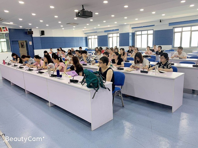 暑期课程为期3周,涵盖了商务英语、经贸翻译和语言文化三个专业方向,培训部为不同方向学员分别配备了班主任,确保学员上课效果及在校学习的各方面服务保障。 随后,谷小娟副教授进行语言学课程的开讲,为研修班拉开了帷幕,学员们第一时间转变角色,全身心投入紧张学习状态。