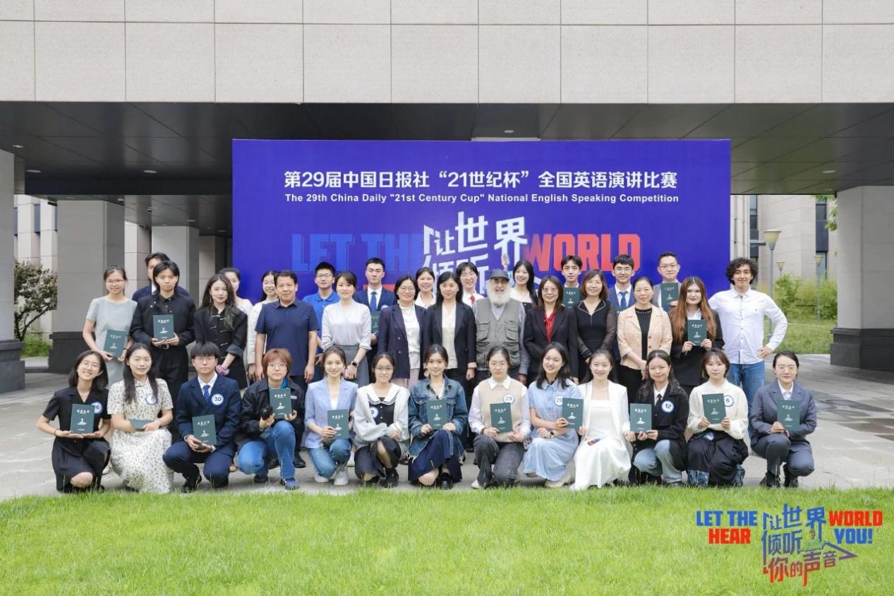 (图:第29届中国日报社“21世纪杯”全国英语演讲比赛北京地区决赛选手与评委合影)