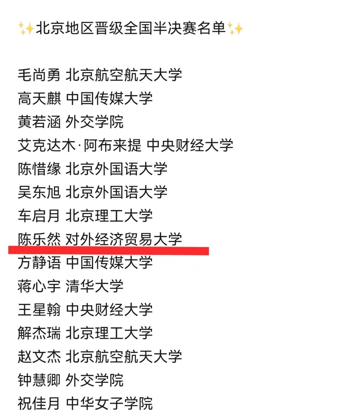 让我们共同期待陈乐然同学在全国决赛的舞台上展现外经贸学子的风采,再创佳绩!
