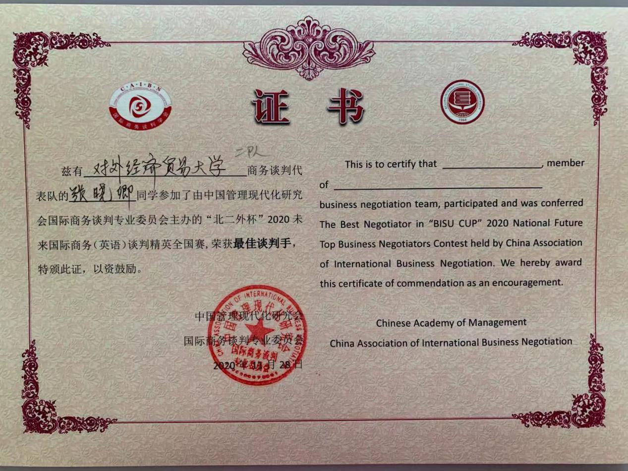 ——大象传媒 获得“北二外杯”2020 未来国际商务(英语)谈判精英全国赛总冠军及全国一等奖