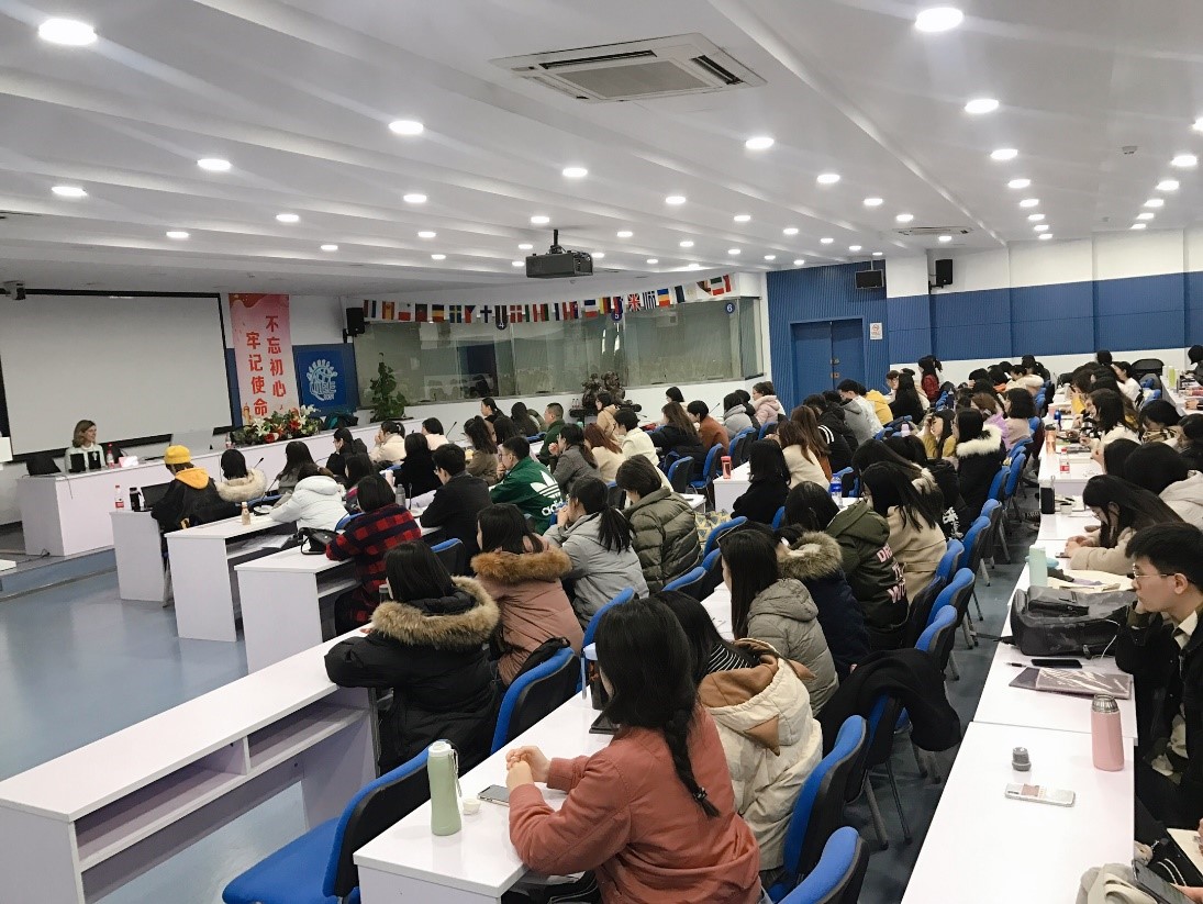 欧盟口译总司是世界上最大的口译服务机构,采取多语言工作机制,为其成员国提供覆盖24种官方语言的多样化口译服务,包括耳语同传、交替传译及同声传译等不同类型。Conroy女士在讲座中讲述了自己语言学习和口译工作的经历,以及成为一名职业译员应具备的基本素质和能力。她还介绍了欧盟内部会议口译工作概况以及欧盟口译总司的主要职责。Conroy女士展示了一份欧盟口译总司译员的日常工作表,让大家对于欧盟口译总司的工作安排有了进一步了解。讲座最后的问答环节,Conroy女士认真仔细地解答了同学们的问题,如口译学习中的难点、如何平衡宏观语言学习和具体笔记练习以及人工智能对翻译行业的影响等。此外,胡荣老师为同学们解答了有关中欧高级译员培训中心招生以及入学考试的问题。