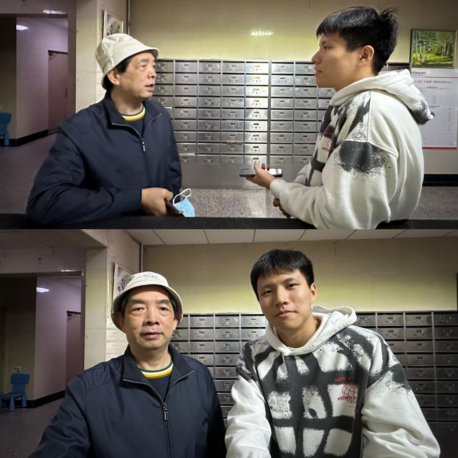 (于顺轩同学为老同志解答智能手机问题并请教学习成长经验)