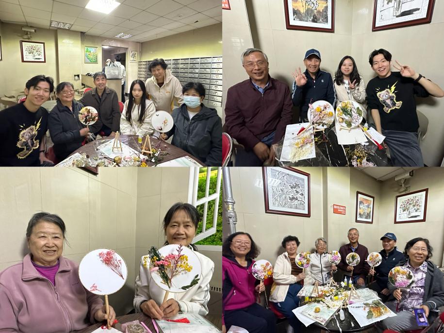 学生支部精心为老党员们选择了“手工团扇”作为制作活动主题,老党员们热情地招呼同学们坐在一起,大家两两结伴共同完成手工。在同学们的帮助与辅佐下,老党员们在空白团扇上悉心布局,将品种丰富的干花搭配组合再粘贴其上,制作出了风格各异且独一无二的美丽团扇。新老同志们相互合作,相得益彰,制作过程中欢声笑语不断,氛围中满满洋溢着温暖与亲切。感情升温的同时,支部之间的情谊也得到了进一步的升华。