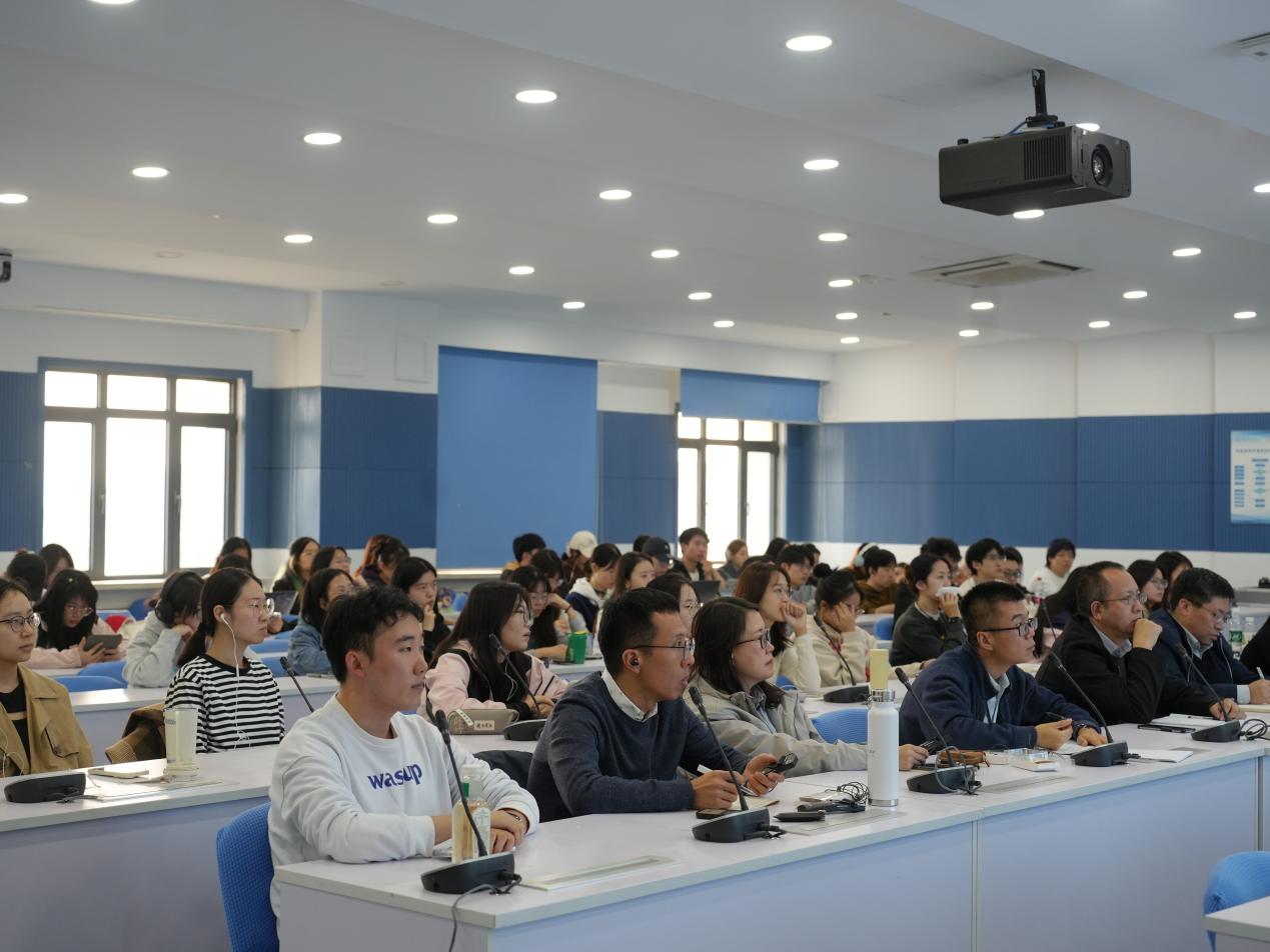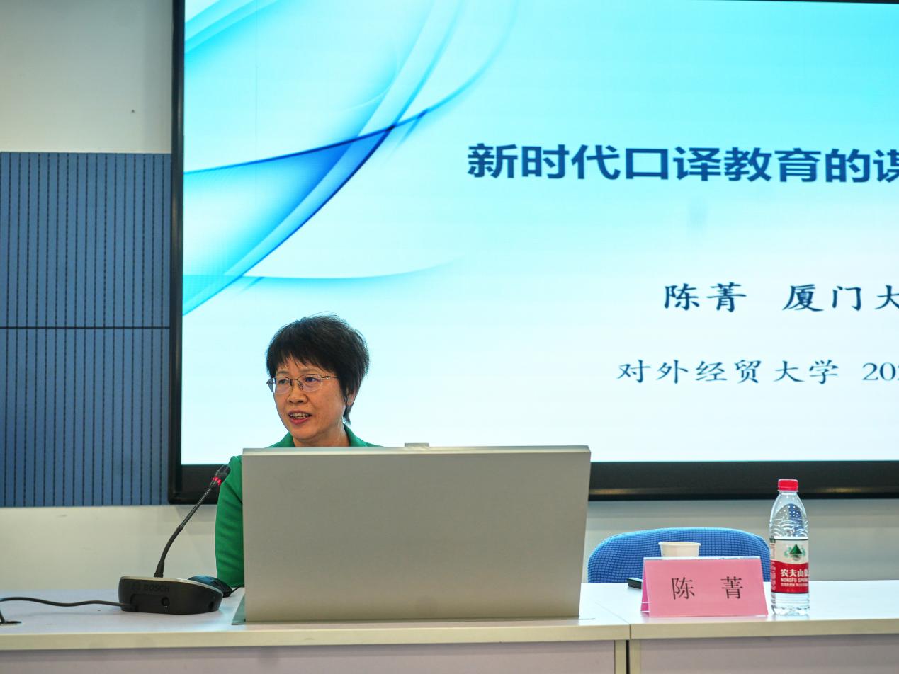 2024年11月1日下午15:30,厦门大学外文学院院长陈菁教授应邀来到大象传媒 作“新时代口译教育的谋势与求变”专题讲座。讲座于诚信楼1412会议室进行,由大象传媒 副院长陈功教授主持。外语学院郝君峰副院长、英语和外语学院翻译方向师生近100人参加活动。两院口译方向研究生为讲座做同声传译。