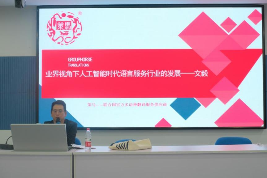 会议最后,学院邀请北京策马翻译有限公司总经理、实践导师代表文毅先生,为研究生开展了以《业界视角下人工智能时代语言服务行业的发展》为题的专业知识讲座,他提到,在ChatGPT的影响下,翻译专业人才将以跨语言能力为核心,以更高效率运用人工智能,并且实现从“高智商、高搜商”人才到“高情商、高问商”人才的转变。通过本场讲座的聆听,研究生新生能够更好明确其未来的学习方向,尽早制定学习计划和目标。