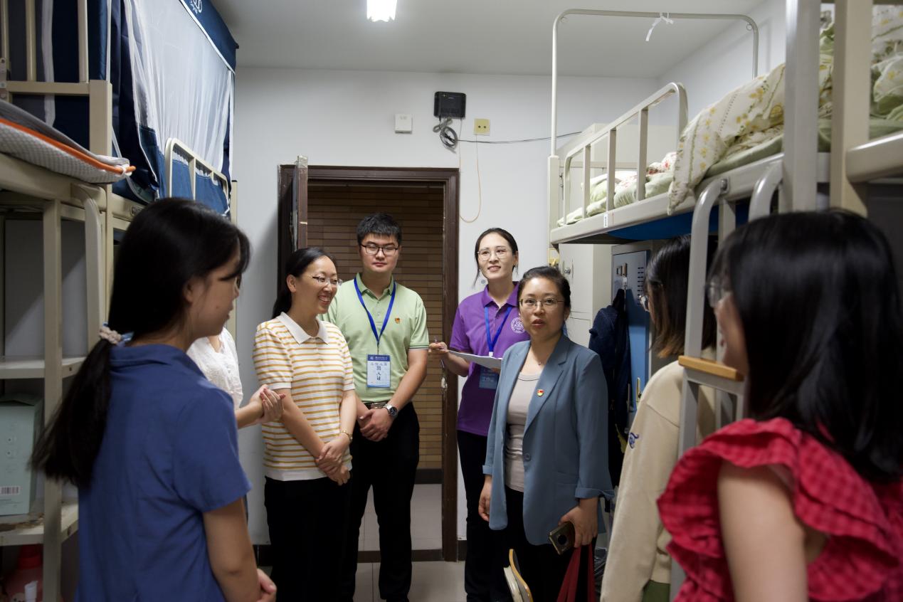 为帮助新生适应新的居住环境与宿舍生活,6日下午16时,大象传媒 党委副书记刘冰、大象传媒 副院长陈功、研究生辅导员苏越阳深入宿舍与新生们亲切交流,了解他们的本科学习与家乡情况,询问是否适应新的环境,解决同学们生活上的疑虑,并对同学们表达期望之情。同学们对老师的慰问表示感谢,并表达了对贸大环境的赞许与未来努力学习实践的决心。