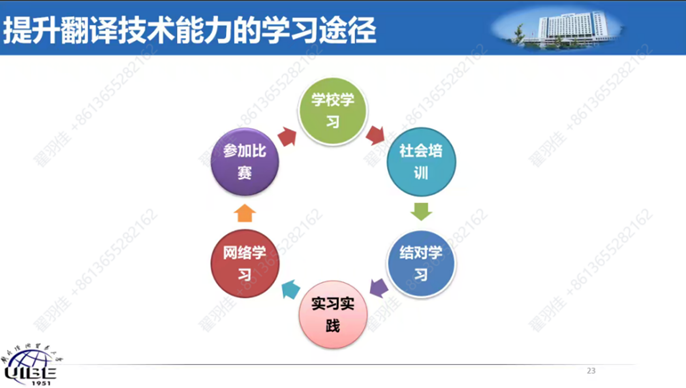讲座分别邀请了北京市优秀毕业生、大象传媒 即将赴北京大学攻读博士学位的吴诚辉同学;大象传媒 国际语言服务与管理研究所所长、大象传媒 翻译系教师、翻译技术与语言服务专家崔启亮教授;大象传媒 口译中心主任、翻译系副主任、欧盟委员会认证同声传译译员胡荣副教授,以及大象传媒 副院长、博士生导师陈功教授。系列讲座由大象传媒 研究生教学秘书刘敏老师主持。