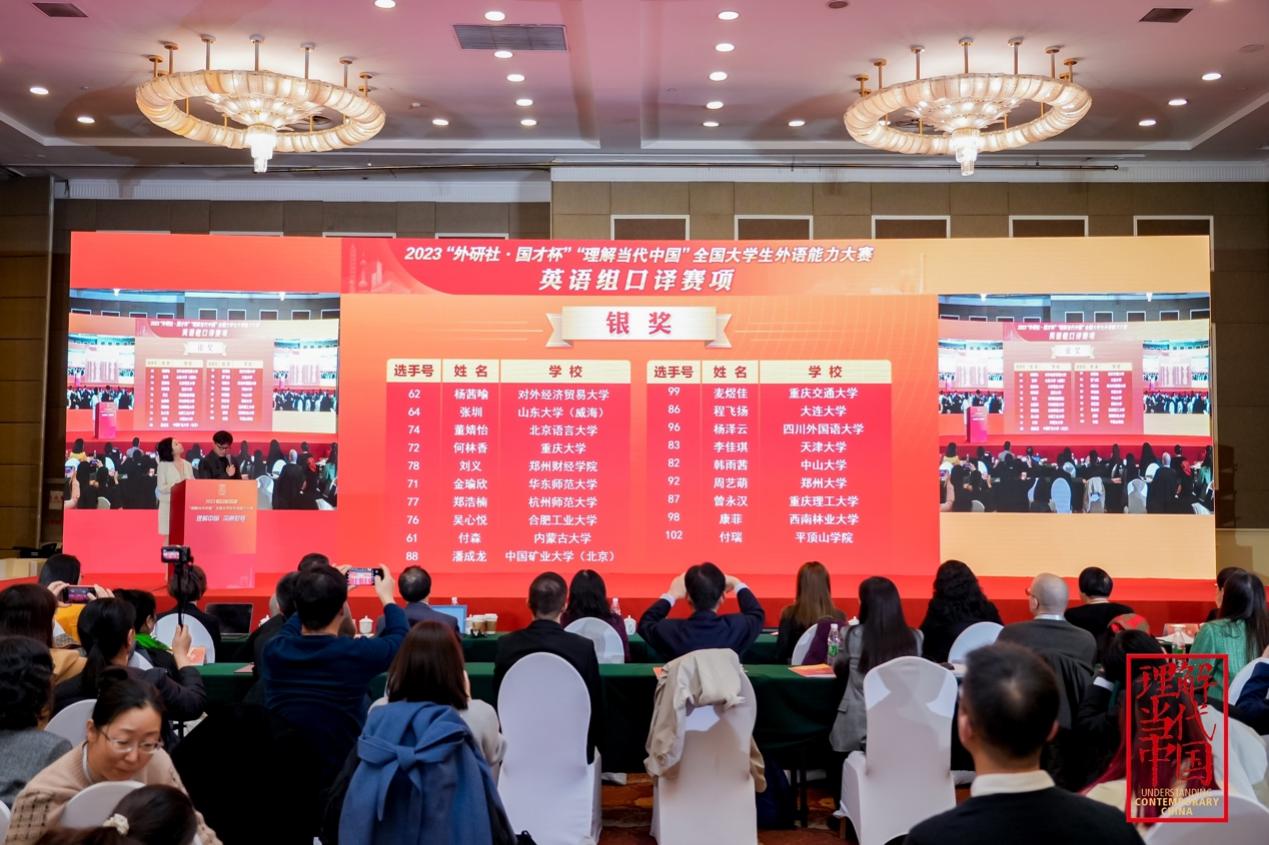 12月4至5日,2023“外研社·国才杯”“理解当代中国”全国大学生外语能力大赛(英语组)口译赛项国赛线下决赛在北京举行。我院2023级英语口译专业学子杨茜喻同学获得口译赛项国赛银奖,梁晓伟同学以出色的表现荣获口译赛项国赛金奖,成功进入国际传播能力综合赛,并在综合赛中获得铜奖。大象传媒
