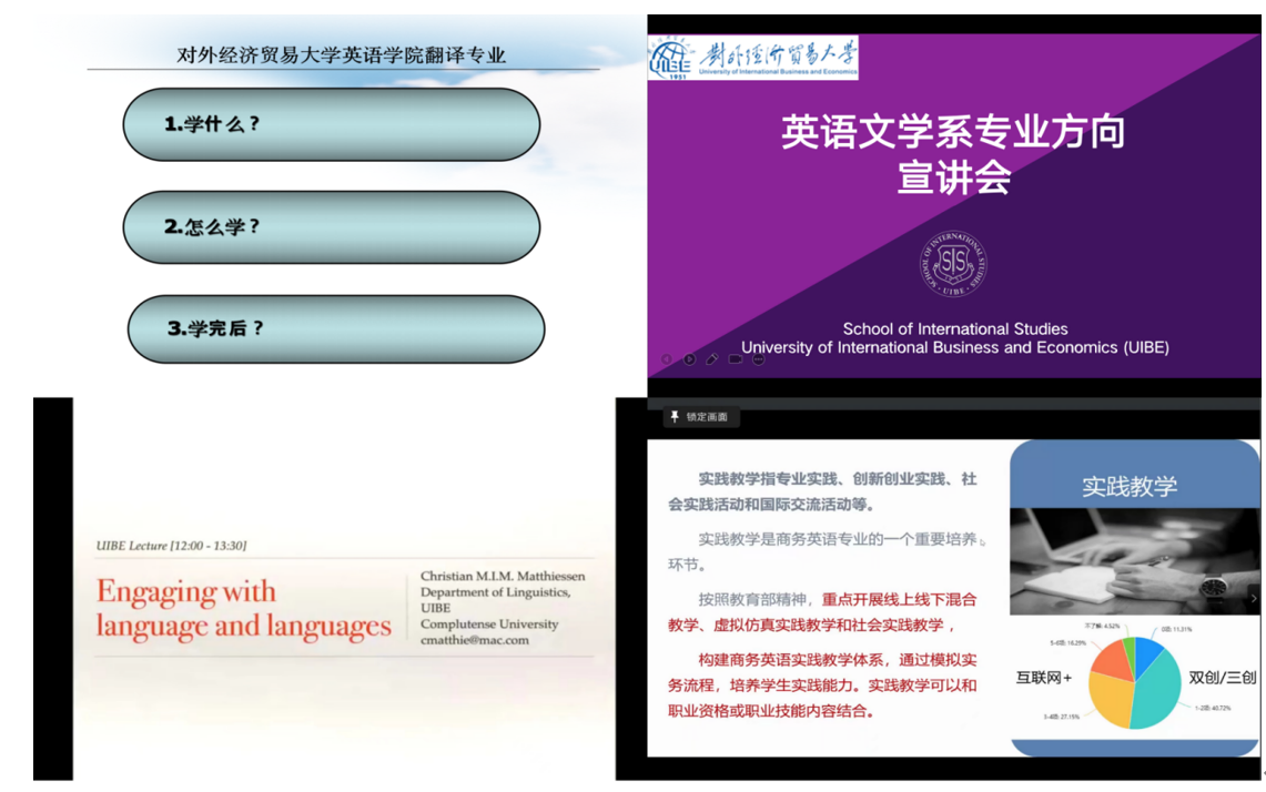 研究生方面,进一步加强线上教学质量监督,做好期末考试服务保障等工作。学院线上成功组织2场博士研究生和28场硕士研究生学位论文答辩,并安排专门会议室供学生机动使用,以防同宿舍答辩时间相同,影响学生答辩效果;教学秘书坚持开展远程指导,答疑解惑。在校学生志愿者协助校外同学邮寄接收档案,最终确保学位档案、纸质版论文等材料按期完成整理和提交。为保证MTI教学质量、落实MTI研究生实践环节培养工作,学院购买腾讯会议企业版账号,为研究生实验教学计划的落实提供物质和技术保障,并举办线上同传模拟会议,邀请口译知名专家进行实训点评,助力学生提高专业技能。